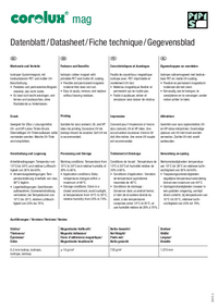 Material: Das Material hat eine Stärke von 0,2 mm und ein Flächengewicht von ca. 725 g/m². COROLUX mag ist auf der bedruckbaren Seite weiß und auf der Rückseite schwarz.