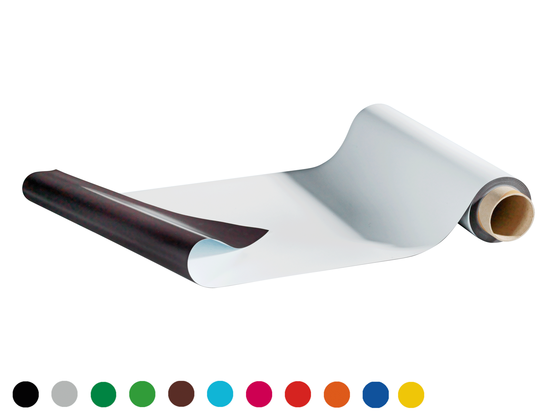 Erhältlich in verschiedenen Stärken, Beschichtungen und Magnetisierungen (auch anisotrop): weiß standardmäßig matt, farbige Varianten meist glänzend, optional Whiteboard.