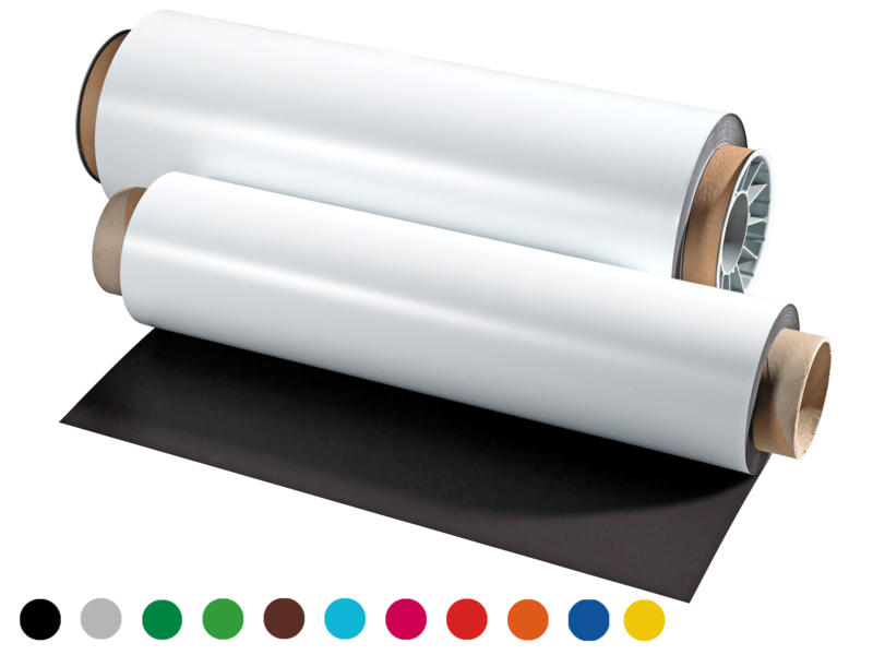 PVC weiß, beideitig magnetisch | 0,9 mm | 615 mm | Eco-Solvent, Latex, UV, Siebdruck | |